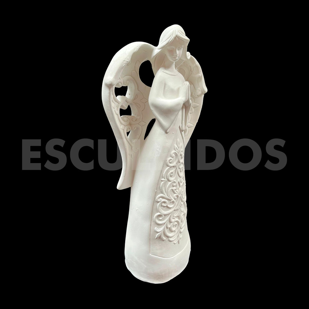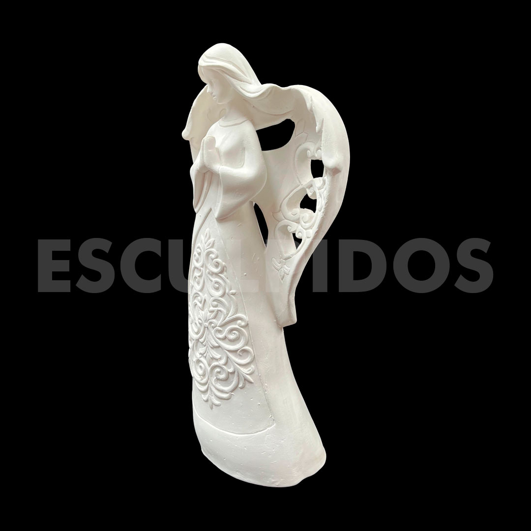 – Anjo Asa Vazada (35cm) – Peça Decorativa em Gesso Natural para Personalização