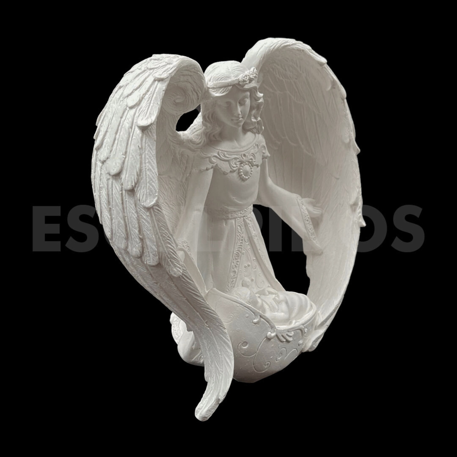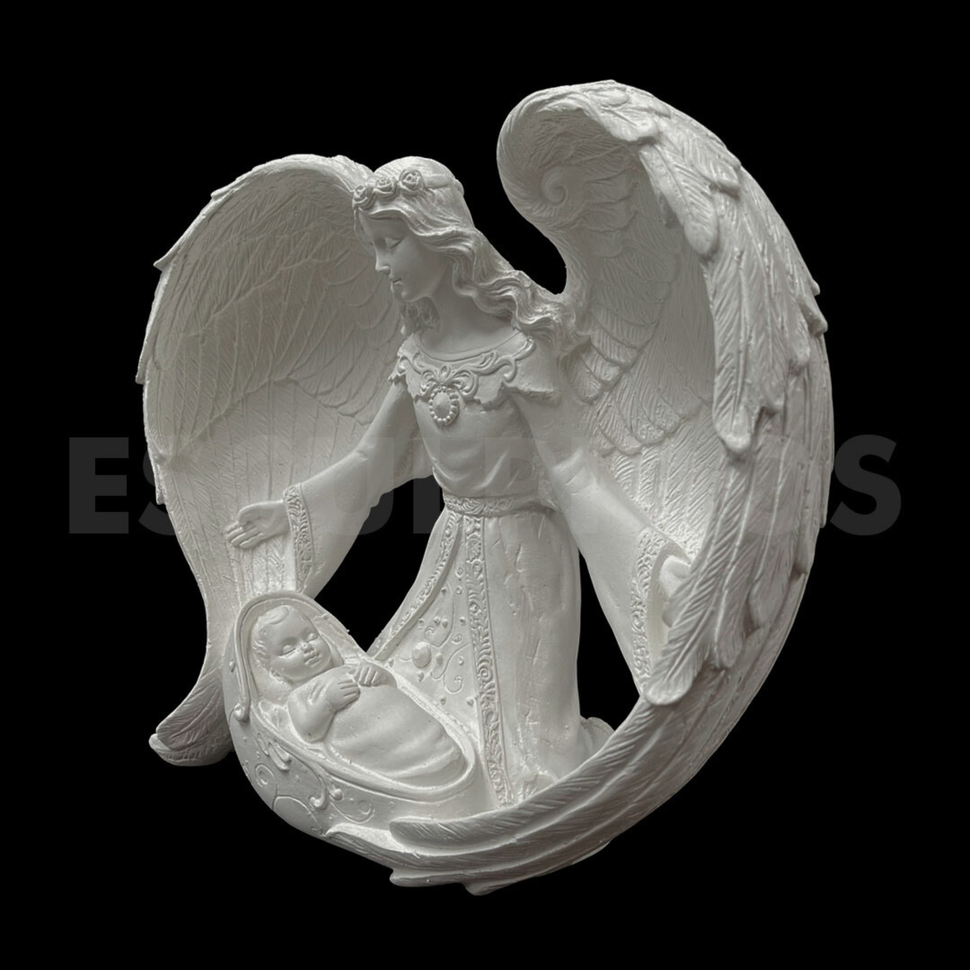 – Anjo com Menino Jesus (23cm) – Peça Decorativa em Gesso Natural para Personalização