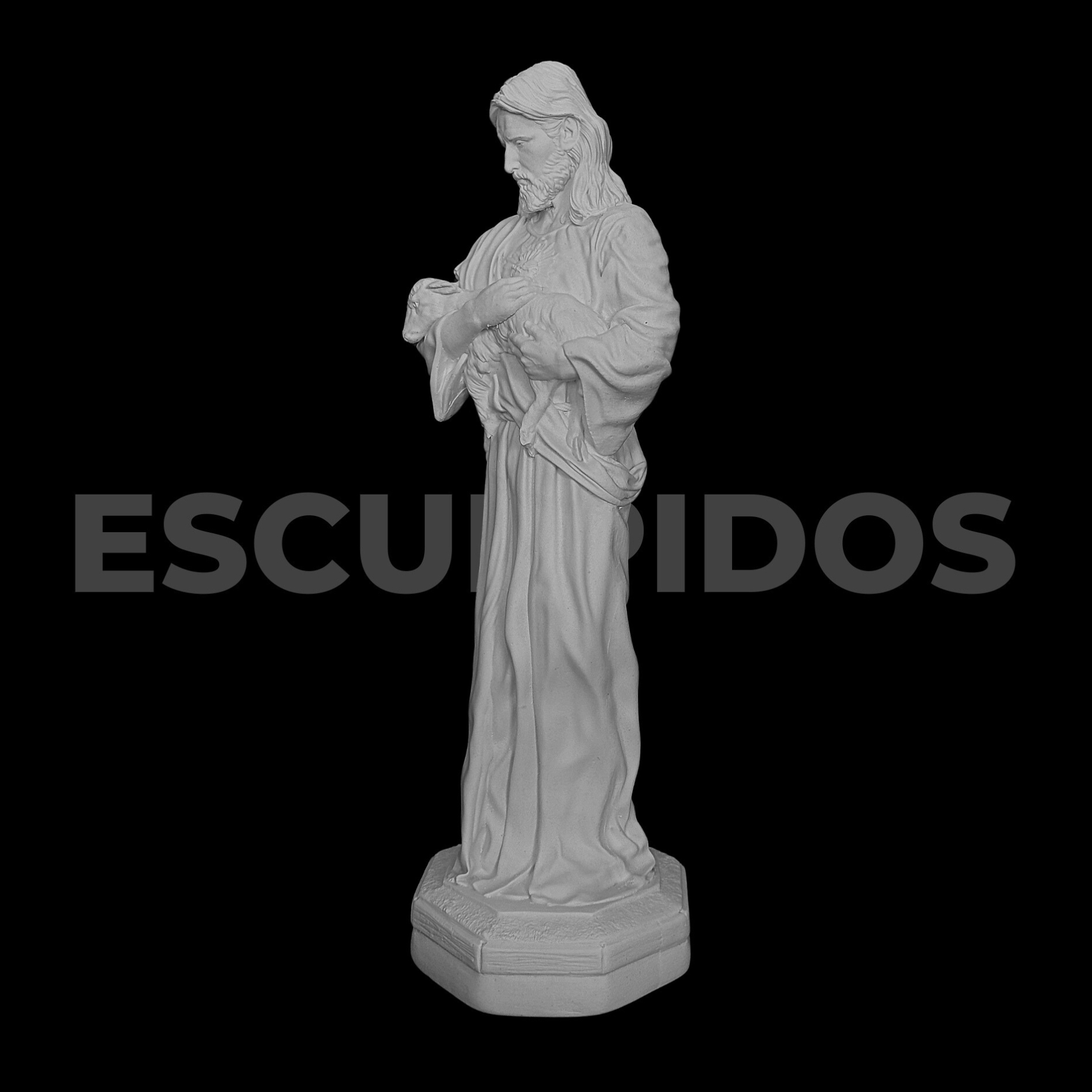 – Jesus Bom Pastor (32cm) – Peça Decorativa em Gesso Natural para Personalização