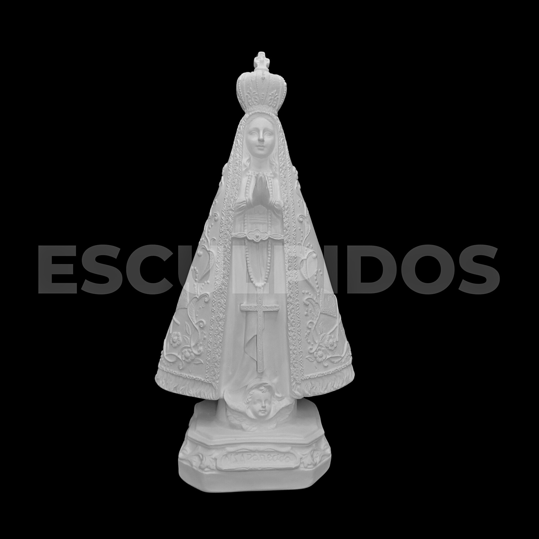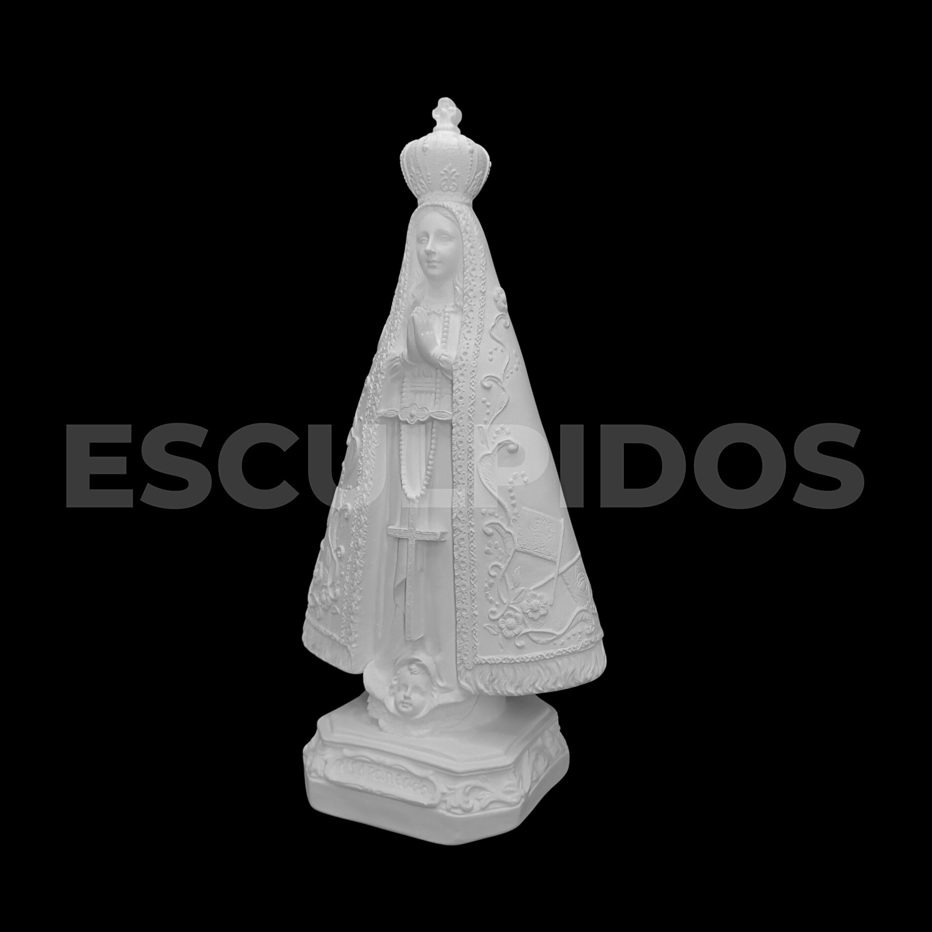 – Nossa Senhora Aparecida Trabalhada (35cm) – Peça Decorativa em Gesso Natural para Personalização