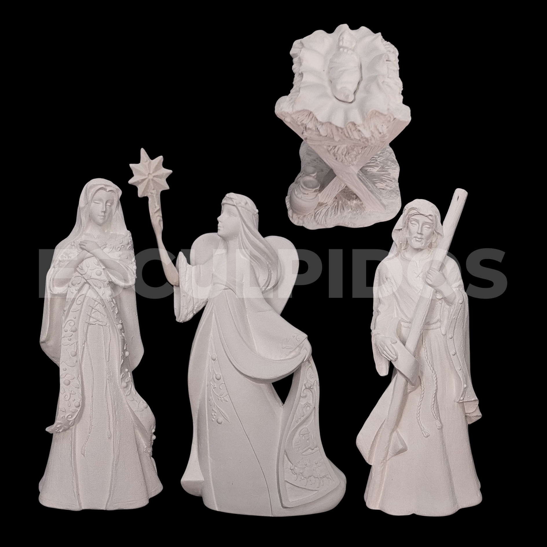 – Presépio 5 peças (24cm) – Peça Decorativa em Gesso Natural para Personalização