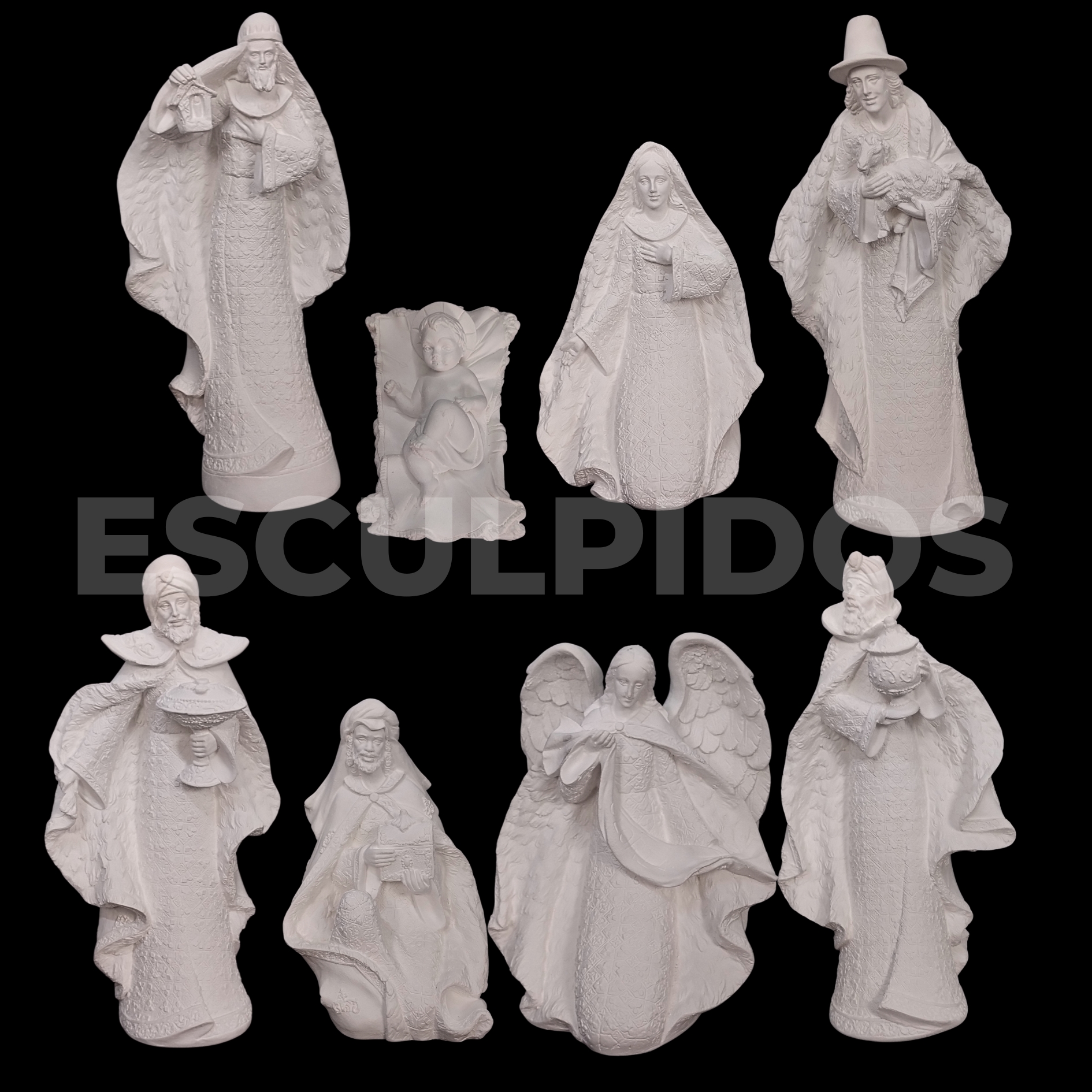 – Presépio 8 peças (29cm) – Peça Decorativa em Gesso Natural para Personalização