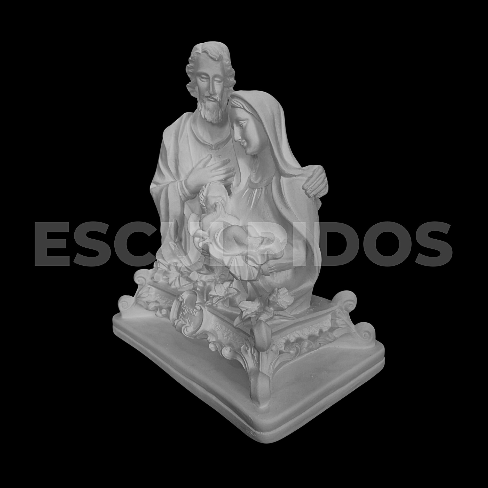 – Sagrada Família Base Retangular (32cm) – Peça Decorativa em Gesso Natural para Personalização