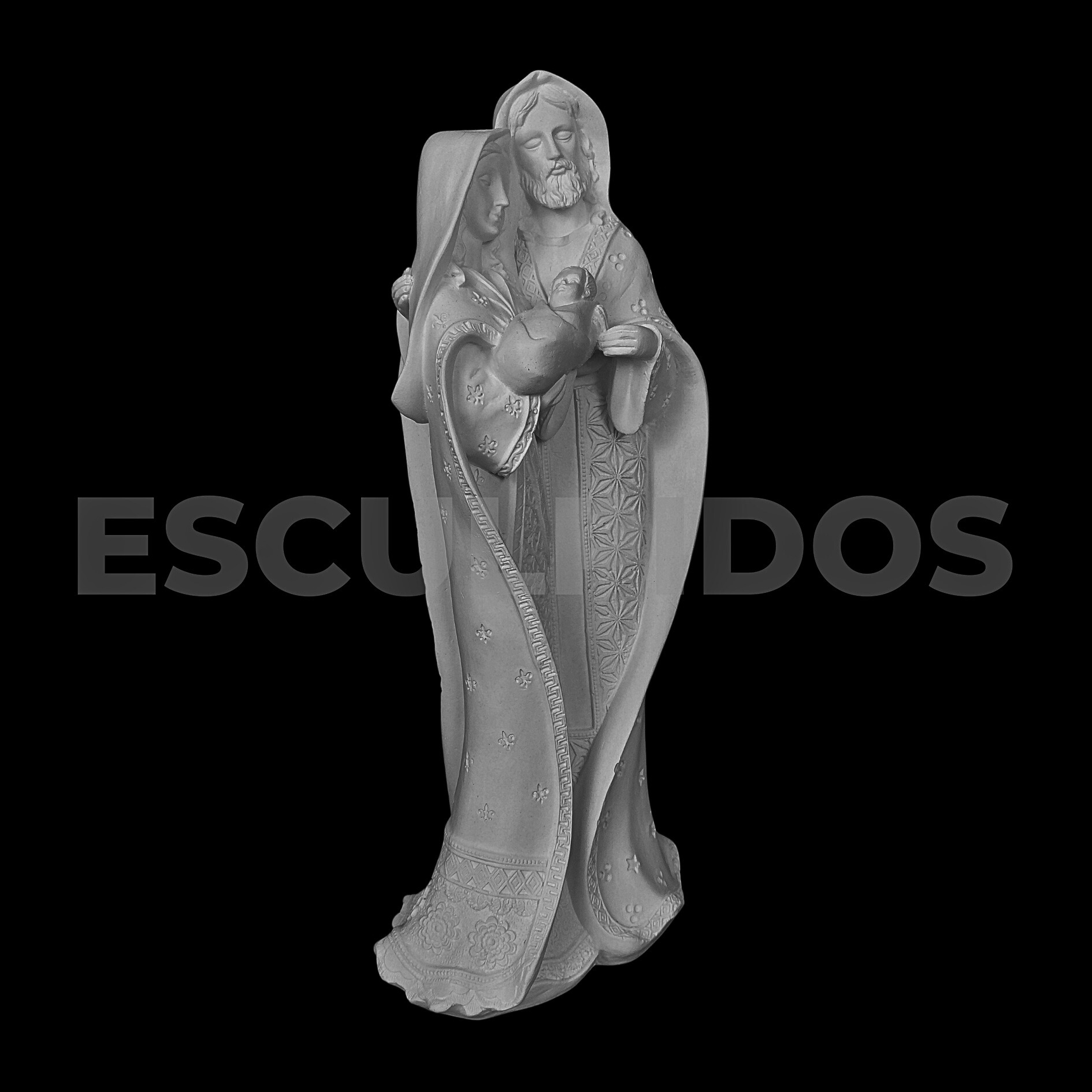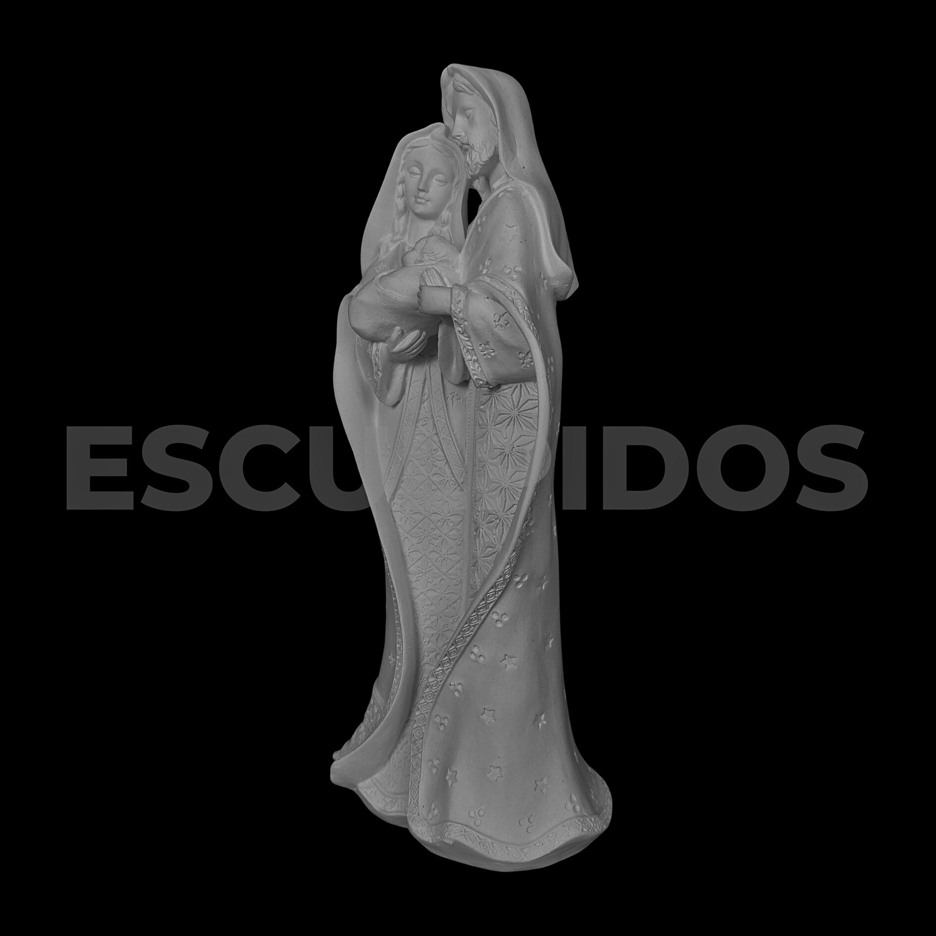– Sagrada Família Manto Estrela (36cm) – Peça Decorativa em Gesso Natural para Personalização
