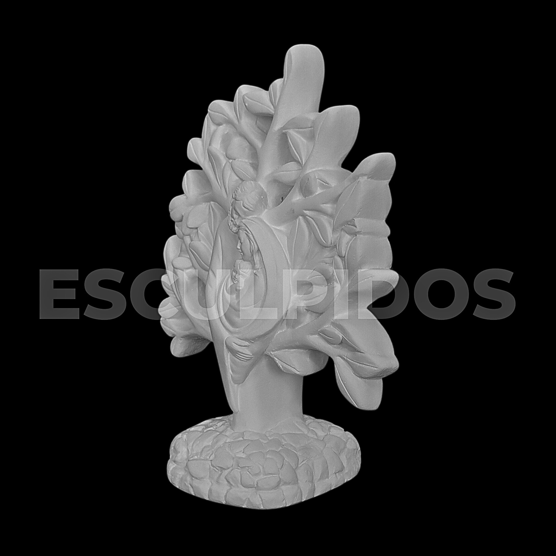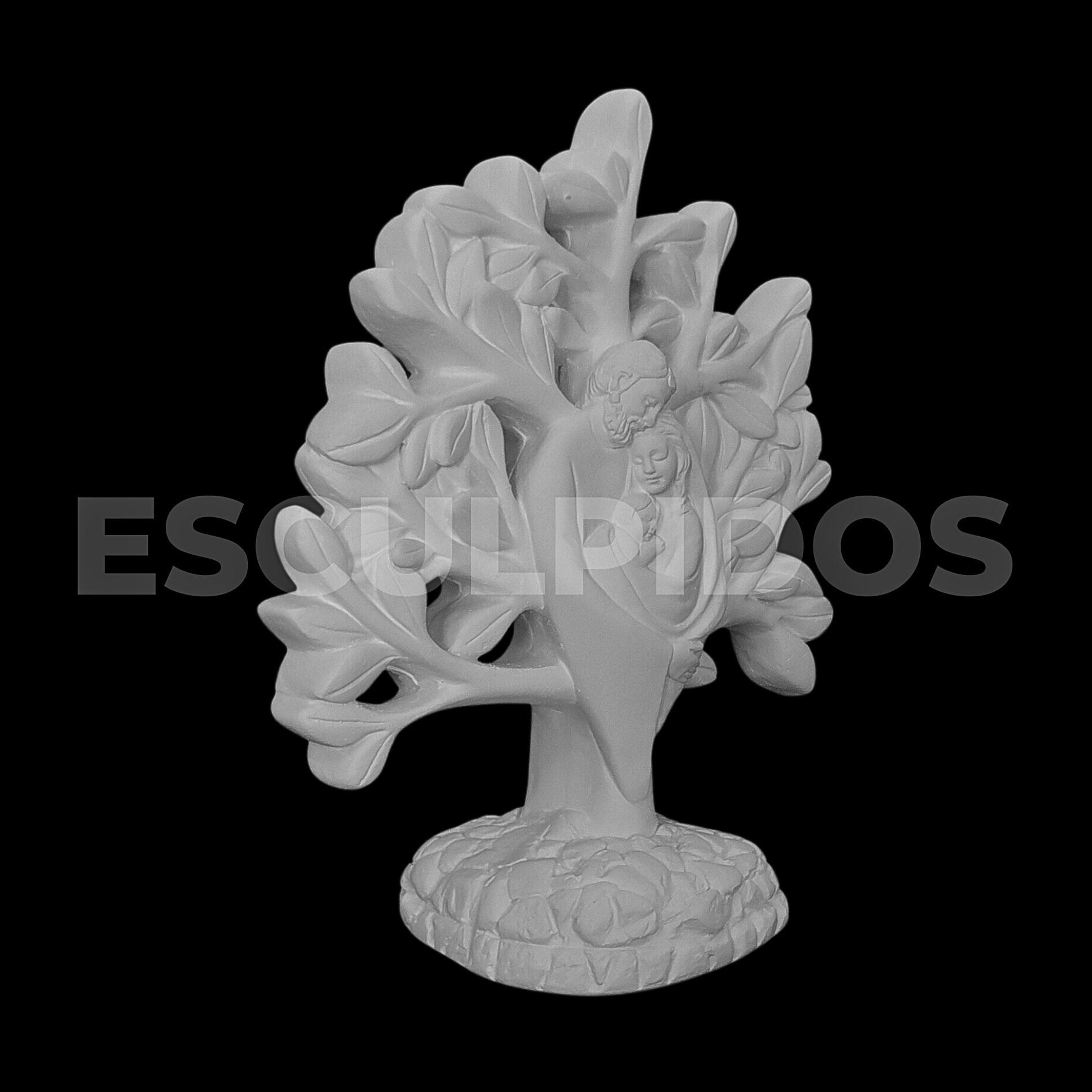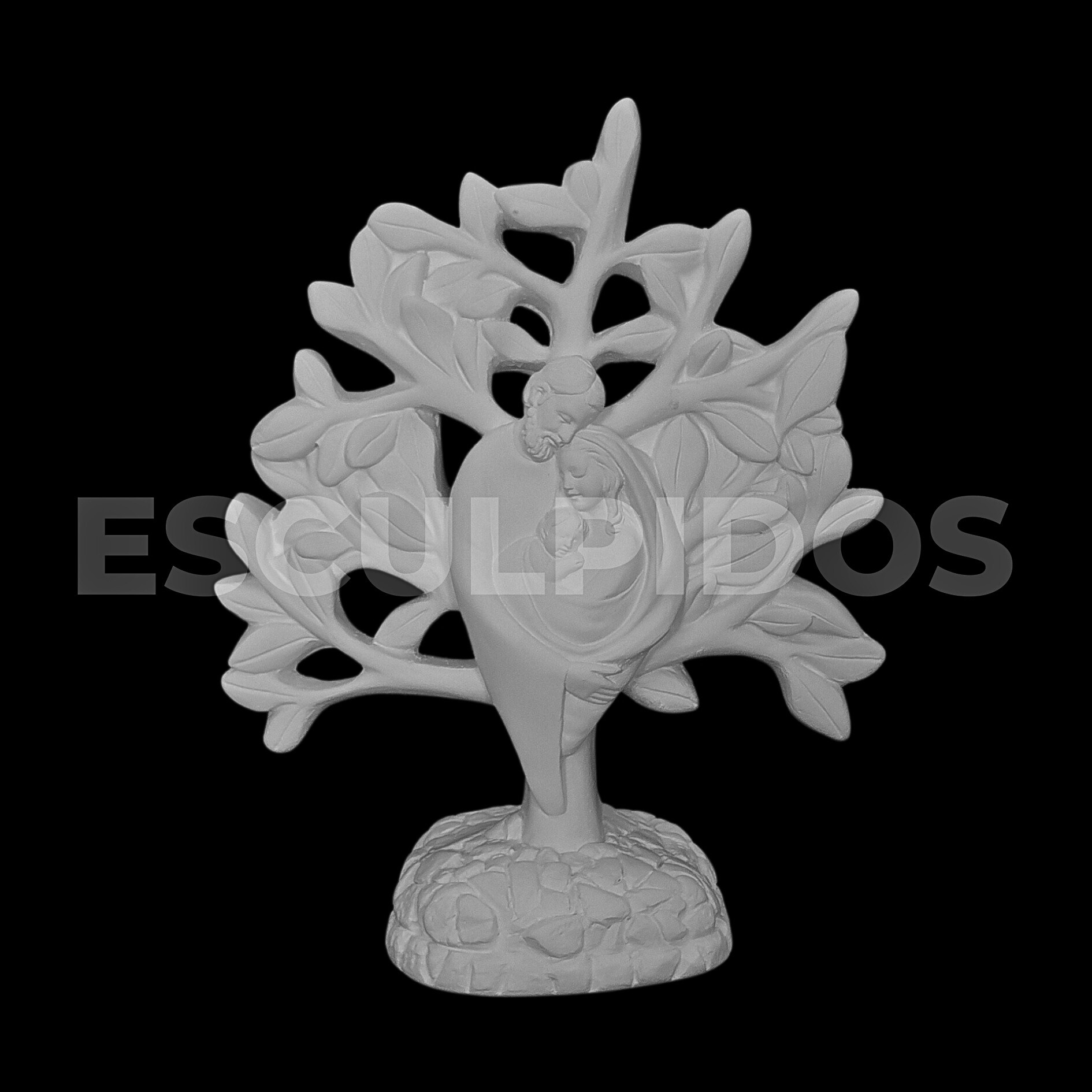 – Sagrada Família Na Árvore (21cm) – Peça Decorativa em Gesso Natural para Personalização