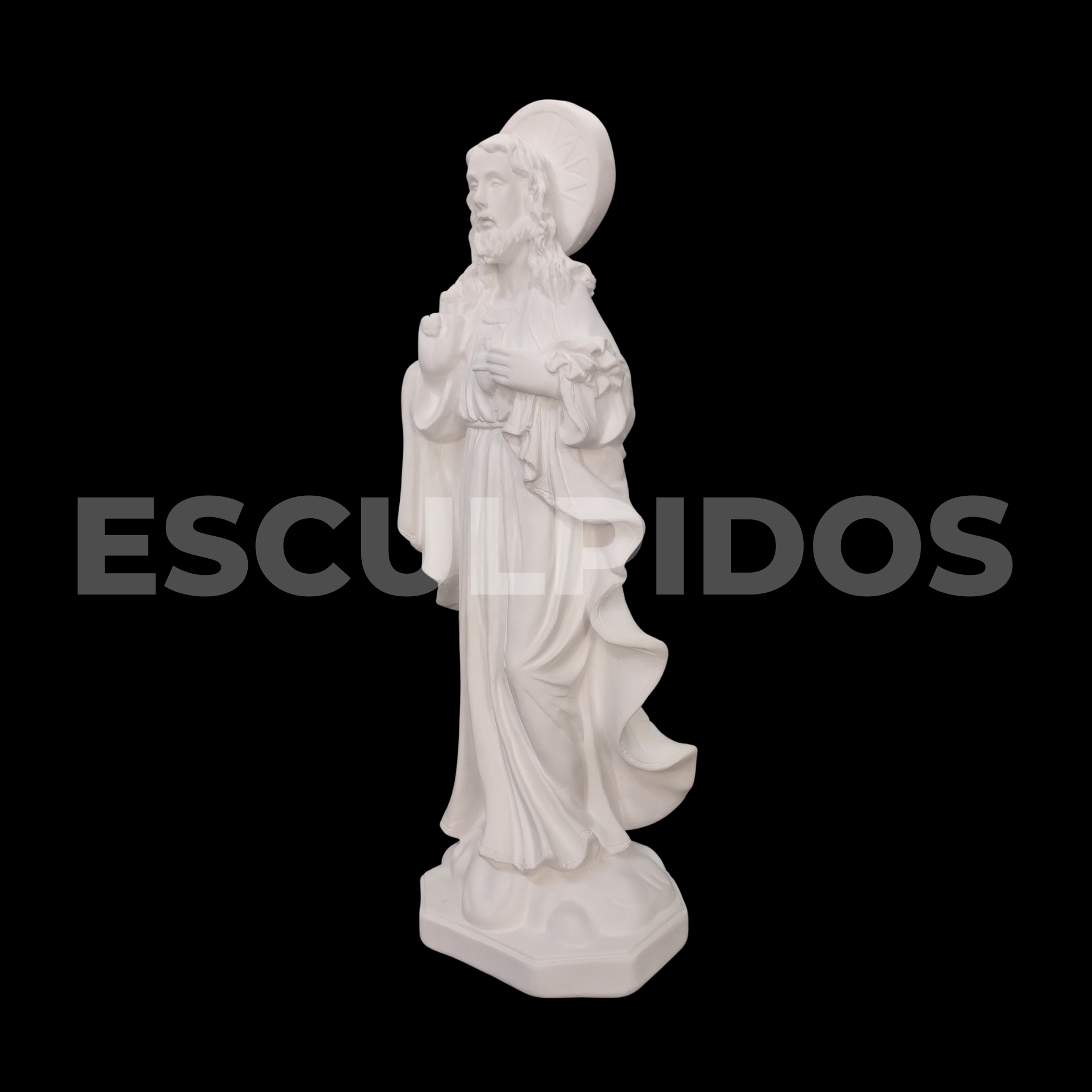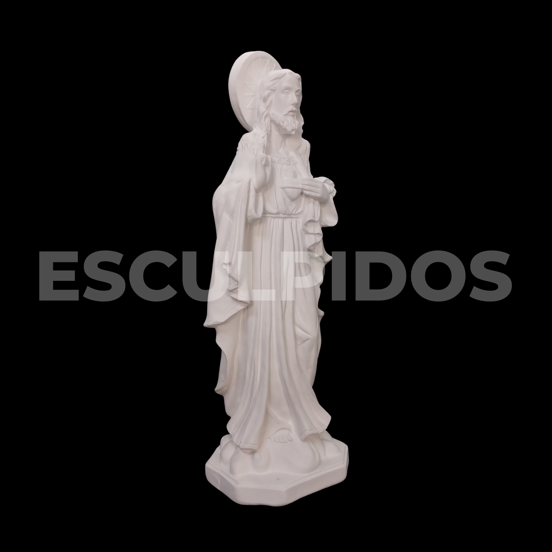 – Sagrado Coração De Jesus (42cm) – Peça Decorativa em Gesso Natural para Personalização