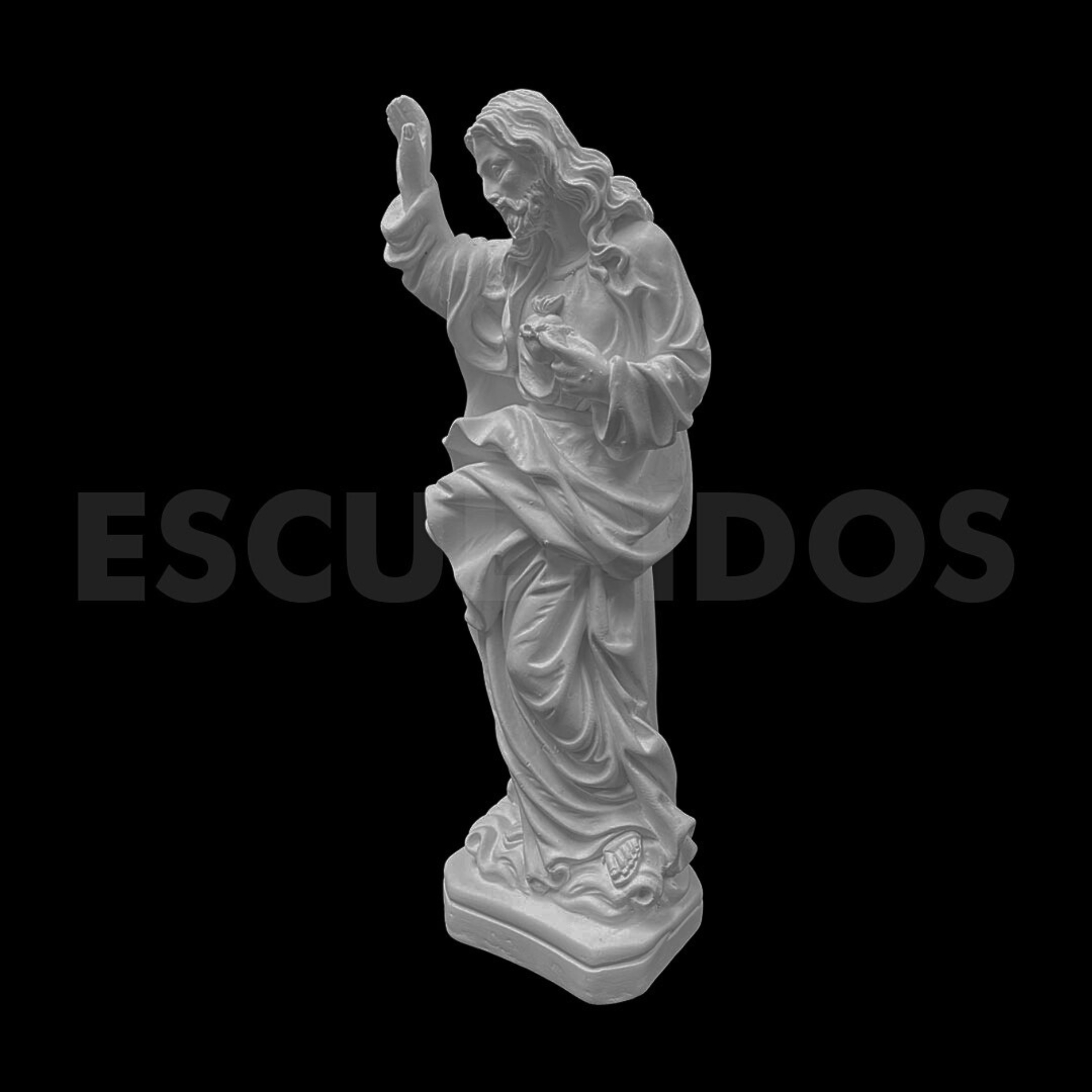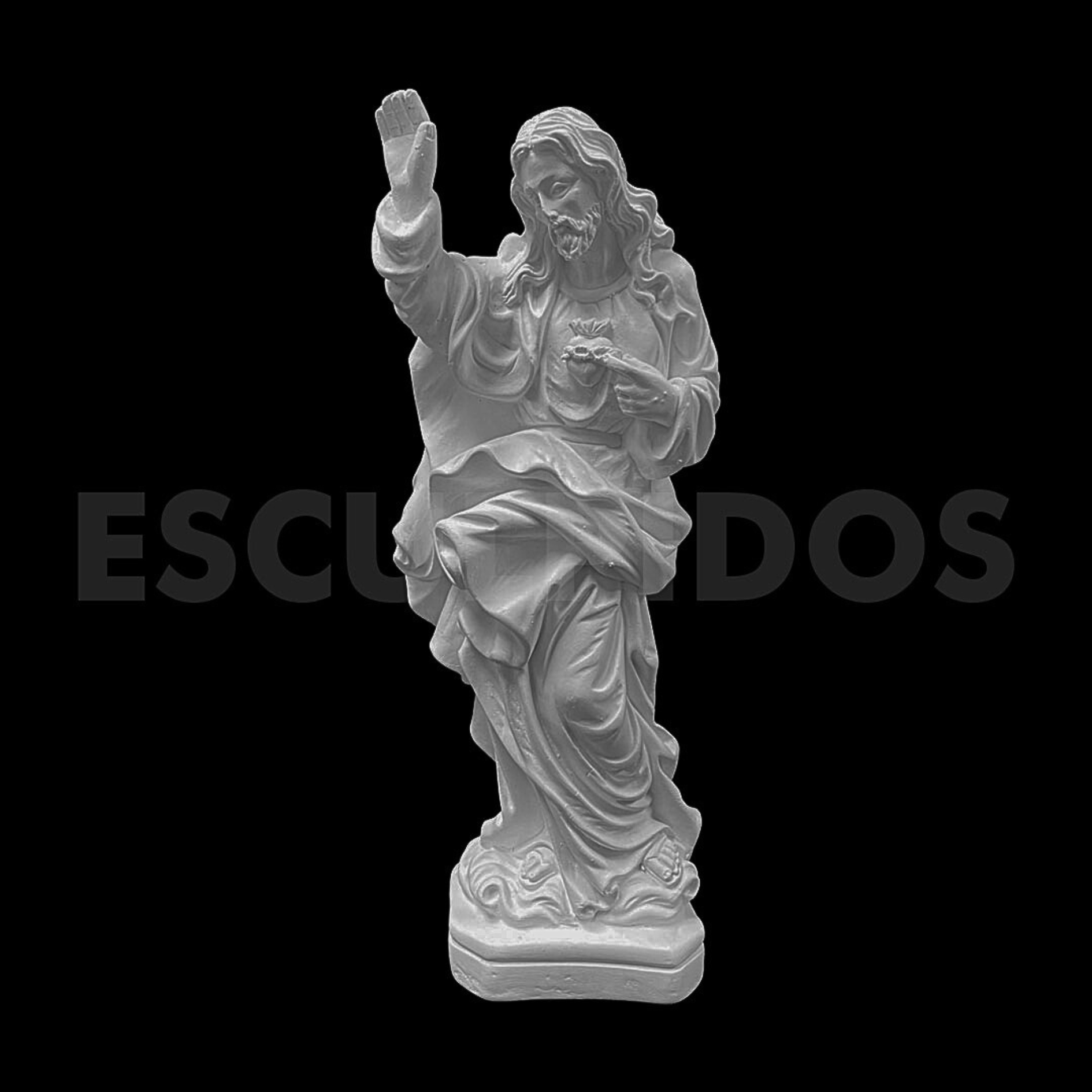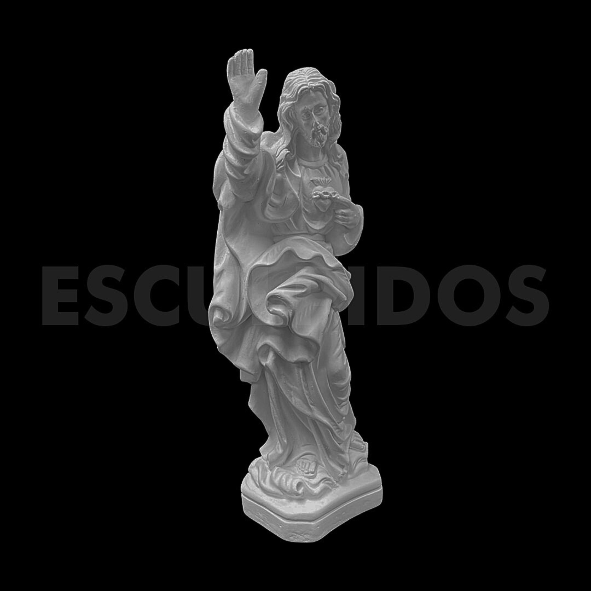 – Sagrado Coração Jesus Barroco (29cm) – Peça Decorativa em Gesso Natural para Personalização
